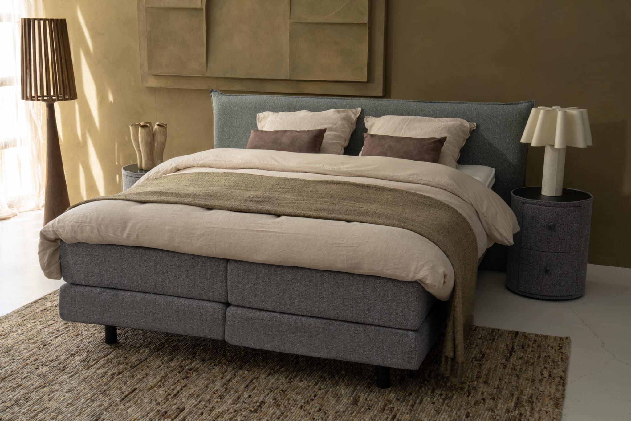 Een goede boxspring vormt de basis van een comfortabele nachtrust. De Avenza boxspring set ondersteunt je lichaam gelijkmatig en zorgt voor een stabiel liggevoel. Hierdoor blijft je wervelkolom beter in een natuurlijke houding liggen en kunnen je spieren tijdens de nacht goed ontspannen.